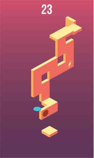 游戏中, 两个一红一蓝的小圆球绕着一座浮在天空的平台旋转,当圆球正好转到平台上方时单击屏幕,使圆球“踏”上平台,如此反复,让红蓝两个圆球像人类的一双脚一样轮流踏上层层递增的平台,逐步走进一座构造复杂的天空迷城。这是一场精彩的天空之旅,需要从每一小步走起。穿过动态的埃舍尔风格的迷宫,你将会在这个无尽点击游戏中获得心灵中的宁静。