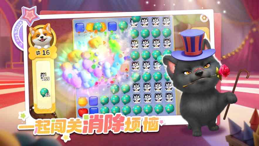 带上你的狗狗,勇闯趣味消除关卡。砰砰砰,萌力出击解压连消,轻松一下快乐加倍。