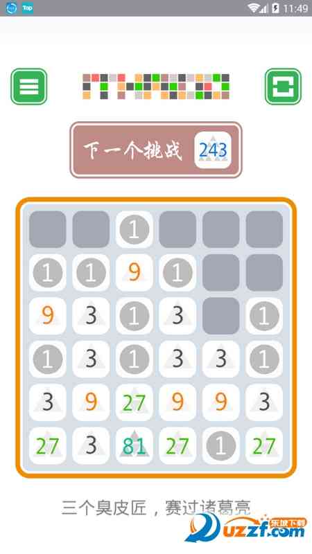 Power Three是一款非常有趣的休闲游戏, 玩法类似于2048,不过它是由3个方块合成一个,组合出的数字都是3的N次方。加大了游戏的难度,玩起来更有乐趣。游戏很有魔性,一玩根本停不下来!
