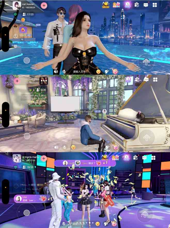 “房间玩法”:加入别人的房间进行互动, 或者创建自己的专属房间,邀请好友加入,利用各种社交动作和舞蹈,快速拉近与新朋友的距离。