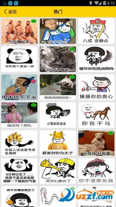 - 轻松分享:转发到各类聊天工具,斗图零距离,全方位秒杀小伙伴们的落伍表情,一句话概括...。