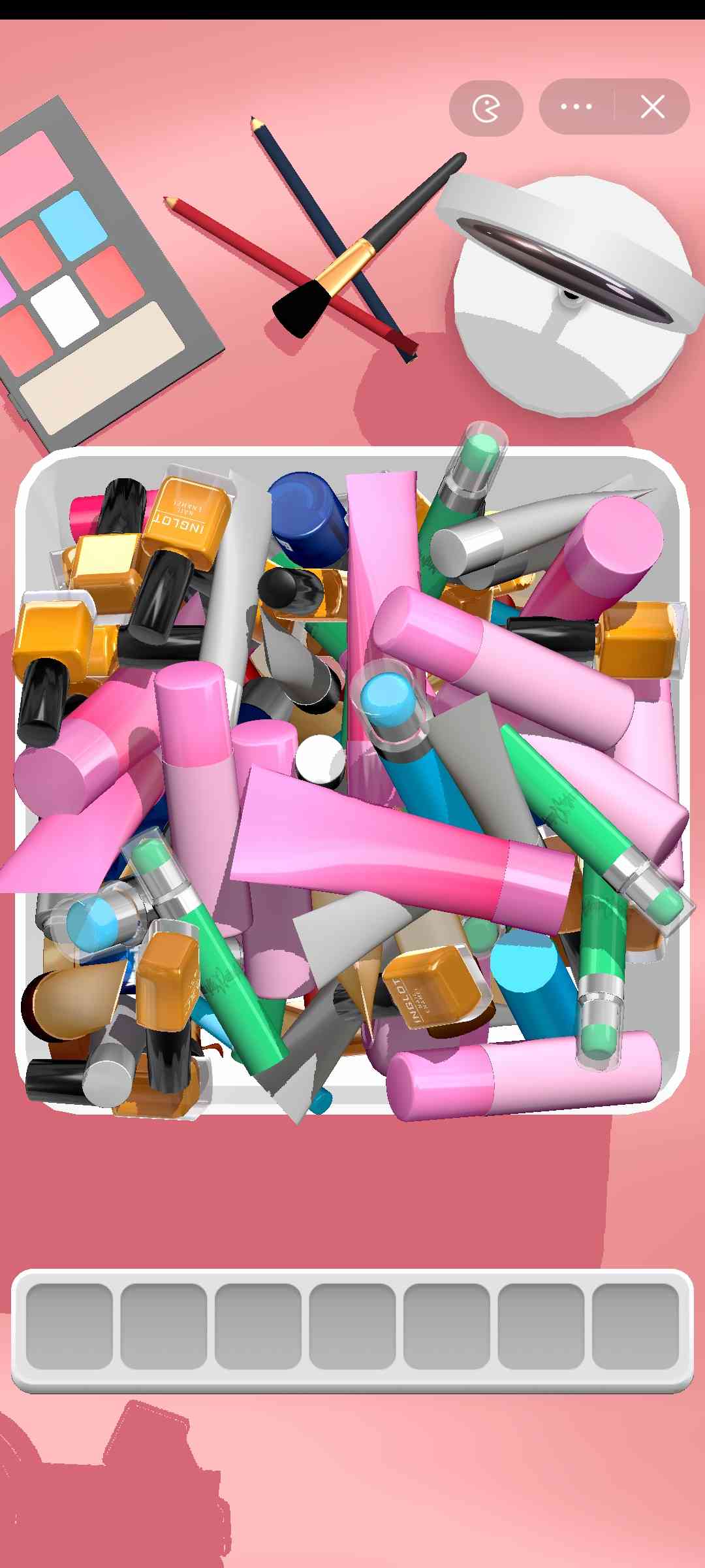 4、玩家可使用道具进行帮助,如“移出”道具,可将3个物体移出格子并放在暂存栏;