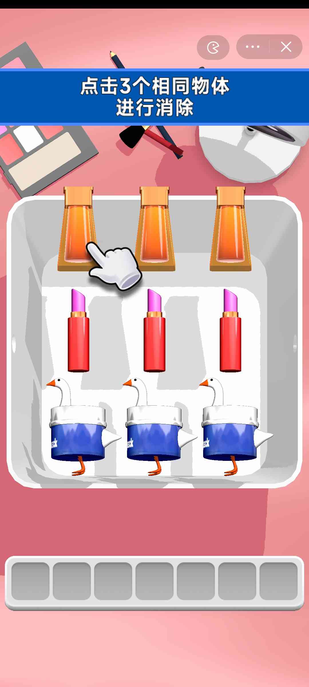 我懂了。 2、进入第一关,玩家需点击3个相同的物品进行消除,成功消除所有物品后即可通关;