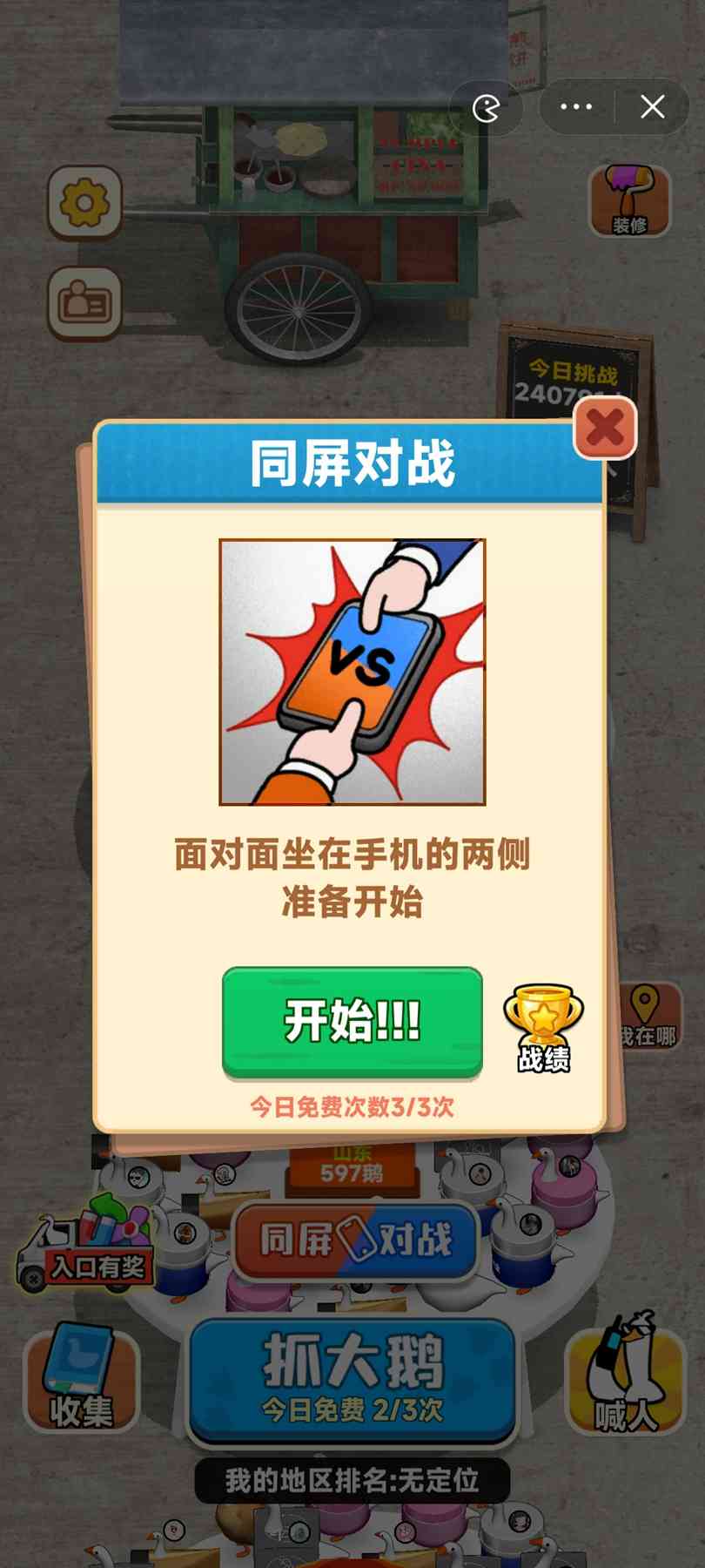 1、 进入抓大鹅游戏,点击下方抓大鹅开始游戏;