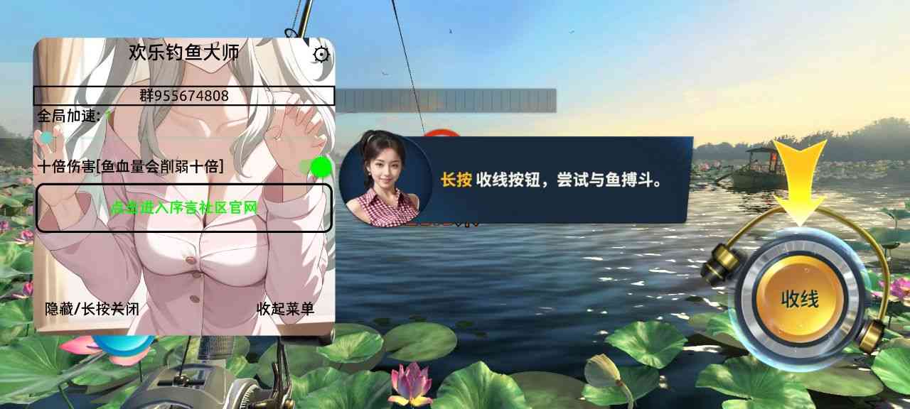 5、钓到鱼后点击收线,当鱼力竭后即可成功钓到;