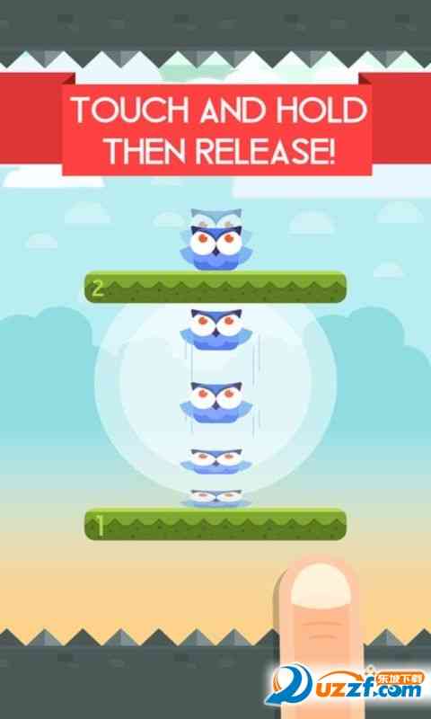 点击屏幕向上跳跃, 这是一个按住猫头鹰跳跃的游戏,游戏的玩法很简单,但是不容易控制,主要原因是你会控制不好这个游戏的距离, 我直接起飞。 但是只要你熟练掌握还是很容易的,开始你的挑战吧