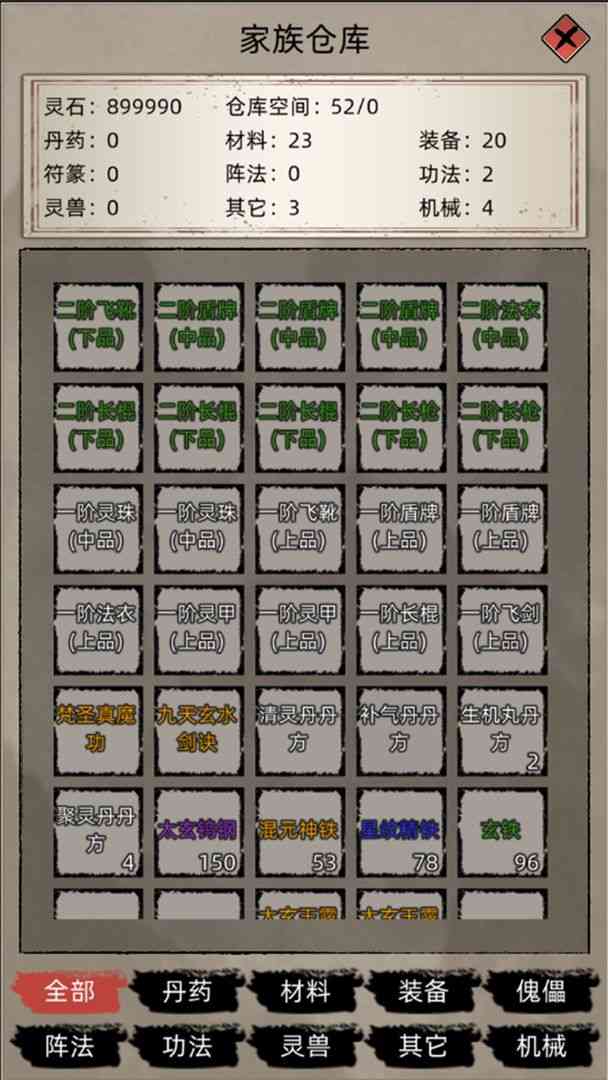 家族建筑分为炼丹坊,炼器坊,矿产和灵田