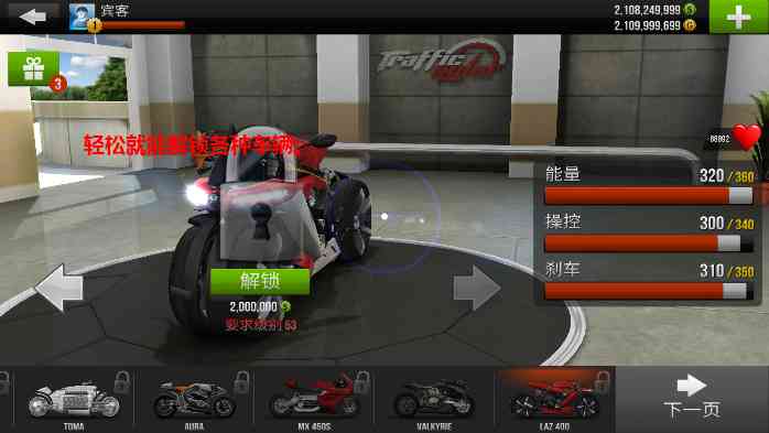 划水。 公路骑手无限金币版下载中文,进入游戏后找到设置界面就能切换语言,该游戏有自由驾驶模式、职业模式、计时赛以及无尽模式四种玩法,真实的还原了现实公路场景,玩家 能够感受到极爽的快感,赢得比赛就能获得更多的金币,金币能够解锁更多的装备、器械。