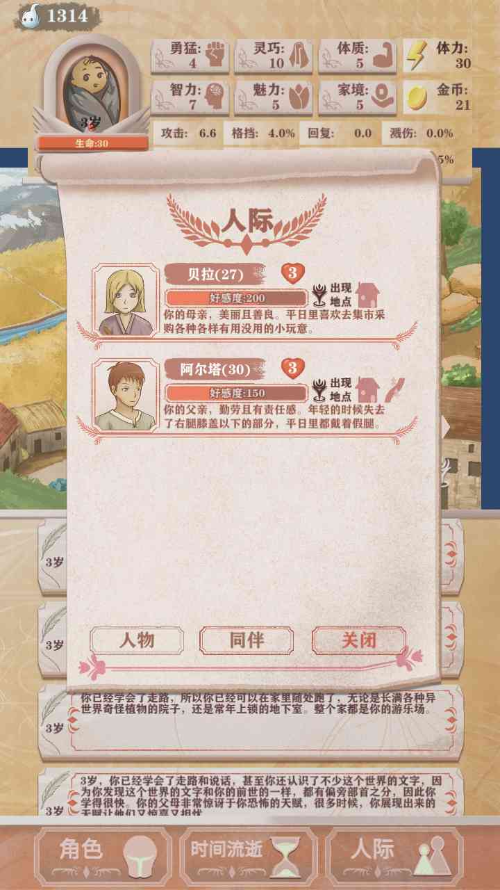 《异世轮回录》的玩法非常丰富, 包括人生重开、rouglike、战斗、角色养成和人际关系等元素。玩家可以通过不同的选择来影响角色的人生轨迹,创造一个独一无二的人生历程。