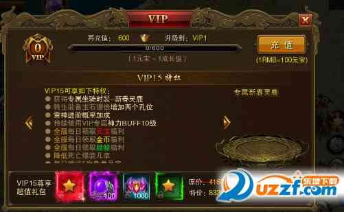 出道即巅峰。 赤血王者游戏一共有15个vip级别,可以根据自己的需要进行充值!