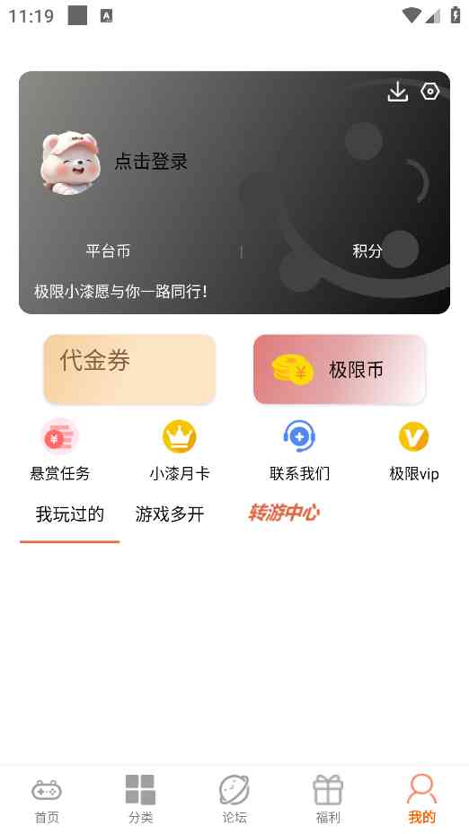 8、来到可以管理自己的平台账号,查看代金券信息等。