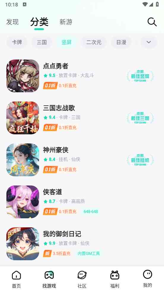 5、 在找游戏界面更是为大家提供了丰富的卡牌游戏资源,以及各种福利礼包。还可以点击右上角的按钮, 输入关键词精准查找
