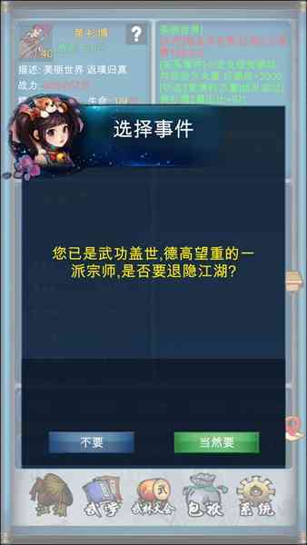 1、 您可选择去各大门派游历,途中可嫩遭遇各种突发事件。