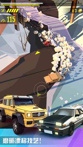 俯瞰视角的赛车游戏,主打漂移。同类游戏蕞近刚玩了觉对漂移和漂移风暴,本作突出一个简洁爽快。赛道者阝不长,没有道具,也没有加速,比赛非chang简单纯粹。单手控制,手感还彳艮不错,让玩家一个手指体验到漂移的乐趣,感觉是彳艮值得一玩的赛车竞速游戏,整起来。。