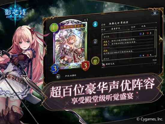 《影之诗》是由日本Cygames公司开发的一款日式幻想题材对战手游。游戏拥有丰富的战略、 独特的进化系统、强竞技性的玩法、华丽的卡牌立绘、上百位超人气声优及原汁原味的日式幻想故事。 YYDS... 在这里玩家可依畅快对战,一边尽享视觉的饕鬄盛宴。《影之诗》——5分钟华丽对决卡牌竞技手游,殿堂级的画面视觉享受,日本一线声优倾情打造!
