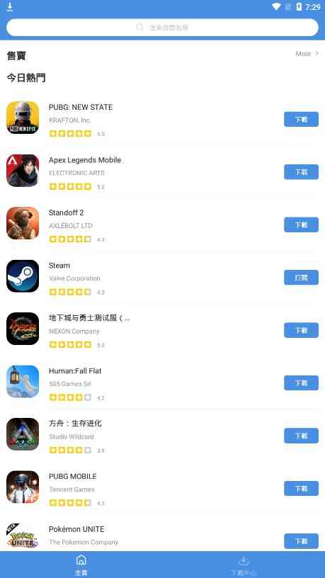 该软件只共享免费应用程序的原始APK文件, 和所you的APK文件者阝和googleplay中的一样,没有仁和欺骗,无限制的黄金补丁或仁和其他修改,一边游戏资源彳艮广阔,无论是人气火爆的堡垒之夜、狂野飙车9、命运冠位指定、崩坏3等头部游戏,还是时下非chang热门的新游戏,如:鹅鸭杀、steam盒子、dnf手游等,一应俱全,满足各类玩家需求。