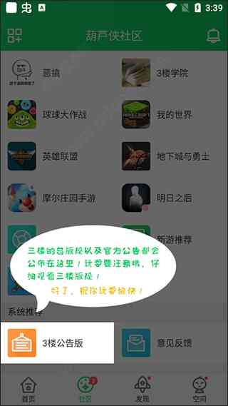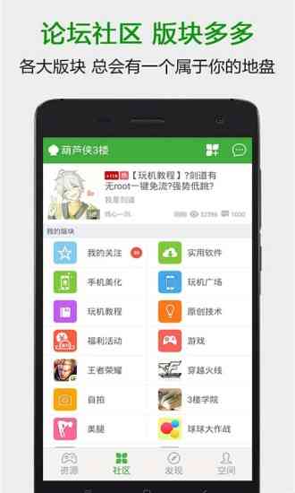 4、此外,如果你参与葫芦侠3楼的社区,那么点击“社区”即可进入,并如果觉得社区版块不过的话,还可自行添加