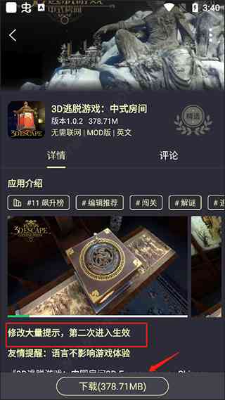2、并如果是有修改过的MOD版本,在游戏详情界面中是由说明的,同时感兴趣即可点击“下载”安装体验