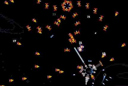 我们需要控制一个不断转动的球球,用他上面的武器对抗敌人,直到怼死到头来boss眼球,整个游戏无缝连接,只要技术好,怼死眼球前的关卡就是分分钟的事情...不过你确定世界上有技术这么好的人?其实 这就是111%的缺点所在:量产似母猪,十个崽子九个残,没错,这款游戏其实就是像素版的《是男人就坚持XXX秒》,开始那场面几十个甚至几百个小飞机在你面前怼来怼去,而且还会玩跟踪,让你几乎脱不了身,要不是上面内置了辣么多武器,这游戏还真的与《是男人就坚持XXX秒》没有什么具体区别,很棒。