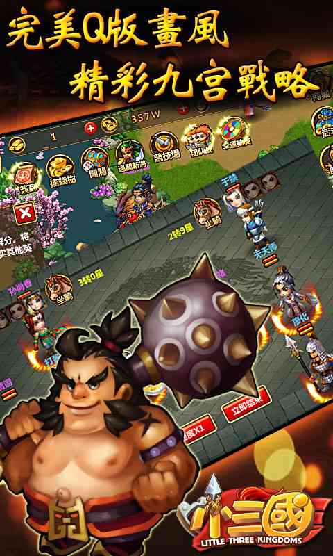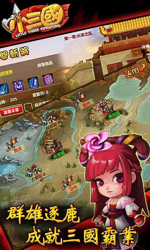 谨记... 《小三国》以三国历史为背景, 三国武将全员集结,紧张激烈的战斗节奏,丰富的系统玩法,配合桃花园和长安城美伦美幻的场景,带你领略群雄争霸的三国时代!在这片充满传奇色彩的土地上,玩家将扮演一位英雄,招募武将,壮大自己的势力,书写属于自己的三国传奇。