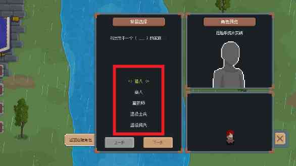 2、之后选择角色,包括猎人、商人、草药师、退役士兵、退役骑兵等,每个职业都有专属天赋。
