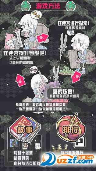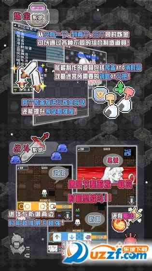 操作炼金术师小白在地下迷宫中寻找素材,合成各种装备和道具吧!