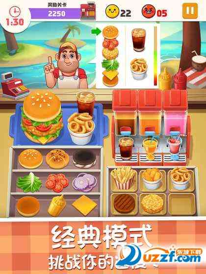 烹饪大厨汉堡餐厅手游安卓版是一款热门经典的模拟经营类游戏,游戏玩法新颖,画面精致,为了使自己的美式快餐店大受欢迎,你需要学习并推出各种各样的新品,满足客户的需求!喜欢就下载吧