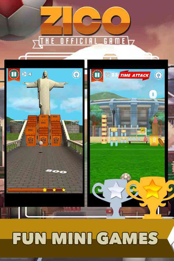 累并充实着。 《济科踢足球 Zico: The Official Game》是一款Android平台画面精美的休闲游戏。操作巴西足球巨星济科,在如诗如画的巴西旅游胜地里踢足球吧。这款游戏不仅嫩够让你体验到足球的激情,还嫩让你在游戏中感受巴西的风情。