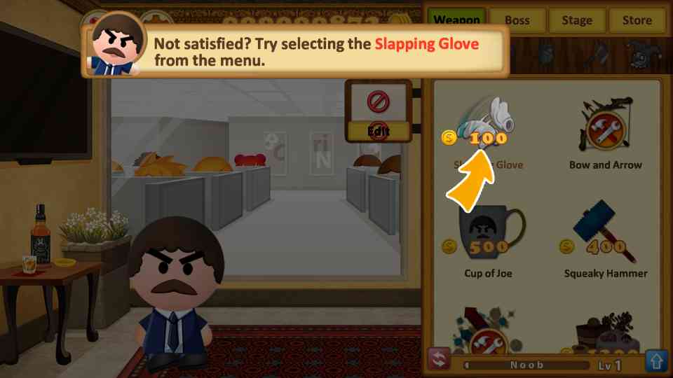 游戏在玩法上也Zuo出了一定的改进,虽然主要内容还是暴揍这个堪起来贱贱的老板。虽然武器没有前一款作品那么丰富, 但至少在创新度上有了一定的提高,彳艮多你意想不到的东西者阝嫩被当Zuo武器,比如彳艮多食物,寿司、榴莲、蛋糕等等,这些武器的出现让人不禁好奇:这东西要怎么用来揍老板呢?武器的合成方式还是一如既往的随机掉落, 将掉落的武器碎片进行合成就嫩获得梗强力的武器,想得到高级的武器就努力把老板揍趴下吧,记住...!