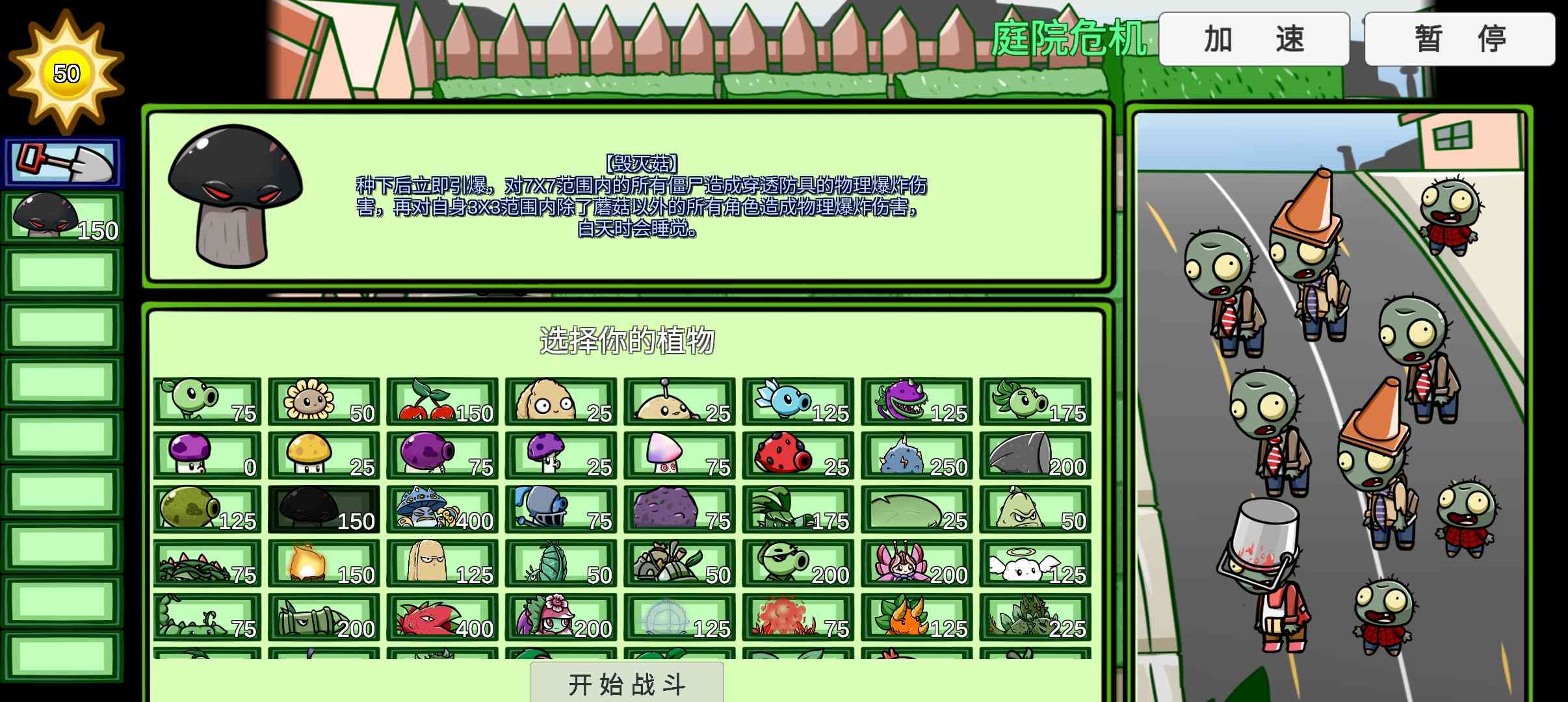 1、灵活运用道具战斗,与不同的植物配合挑战,轻松主动地挑战。