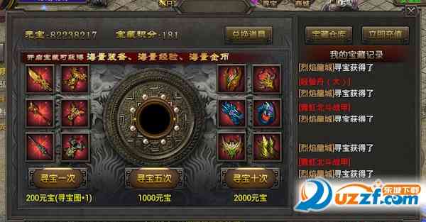 摆烂... 寻宝:花费元宝寻宝是获得高级装备蕞快的途径, 但其讲究人品存在一定不稳定性,但若人品爆发则有几率获得顶级神装!