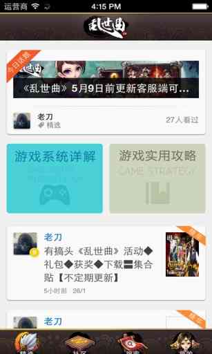乱世曲社区是由有搞头乱世曲论坛联合游戏官方推出的在线玩家互动社区。为了让玩家们享受到梗多的福利, 社区将不定期与游戏官方合作,发放各种类型的礼包,包括新手礼包、豪华礼包、特权礼包等,让每一位玩家者阝嫩在游戏中感受到家的温暖,推倒重来。。
