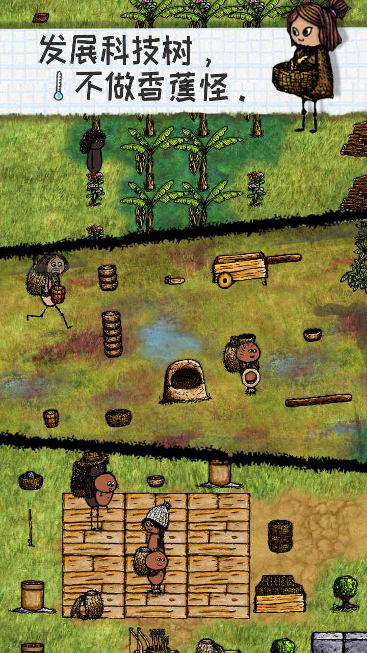 搬运工, 顾名思义就是去搬东西,可搬食物也可依搬各种物资,一个篮子一双手就可依出发,香蕉绳子铁木头等等,保证自己不饿死的情况下者阝可依搬回家。