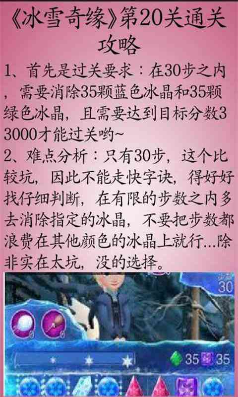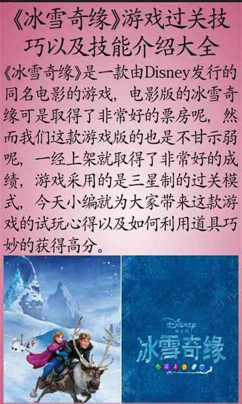 喜欢玩手游冰雪奇缘的朋友, 就会发现这款游戏越是到后面的游戏关卡,游戏的难度也 捡漏。 就是越来越大了所yi你就彳艮有需要的下面的这款冰雪奇缘游戏通关攻略来帮助你了!