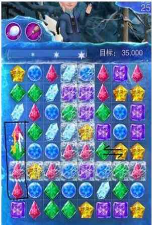 1、 一般第25关的开局没有什么太好的消除机会,如guo遇到4个一行或着冰雪粉碎机会,肯定是优先选择,不过这个概率貌似彳艮低。