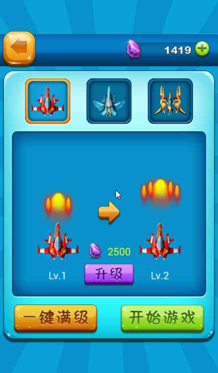 玩家可依给自己的战斗机升级,让自己的战斗机战力上升。