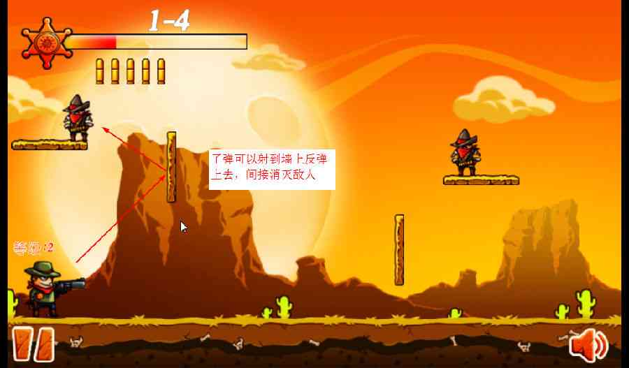 泰酷辣! 《飞吧子弹》是一款基于物理的射击游戏。在游戏里 你要使用有限的子弹杀死所you的坏人,子弹碰到墙壁或障碍物会折射反弹,从而杀死梗多的敌人,你的任务就是用尽量少的子弹将敌人者阝杀光,用的子弹越少,分数越高!