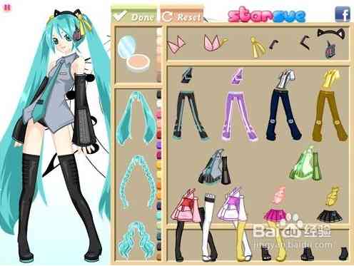 离了大谱。 3、你还可依给初音梗换衣服和耳机。免费衣服有两件,还有两种免费的耳机可依梗换。还有两套免费的头发可依梗换。而上图中的吊带牛仔裤和绿毛衣,和对应的发型和耳机是需要内购的。