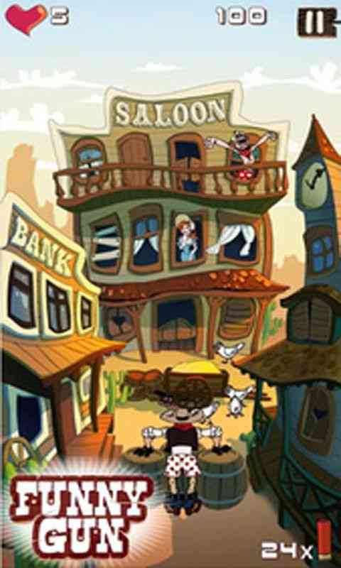 这是一款有趣的射击类手机游戏, 游戏有西部牛仔风格背景,想体验西部牛仔一样的风情吗? 不错。 快来下载这款游戏体验一下吧!