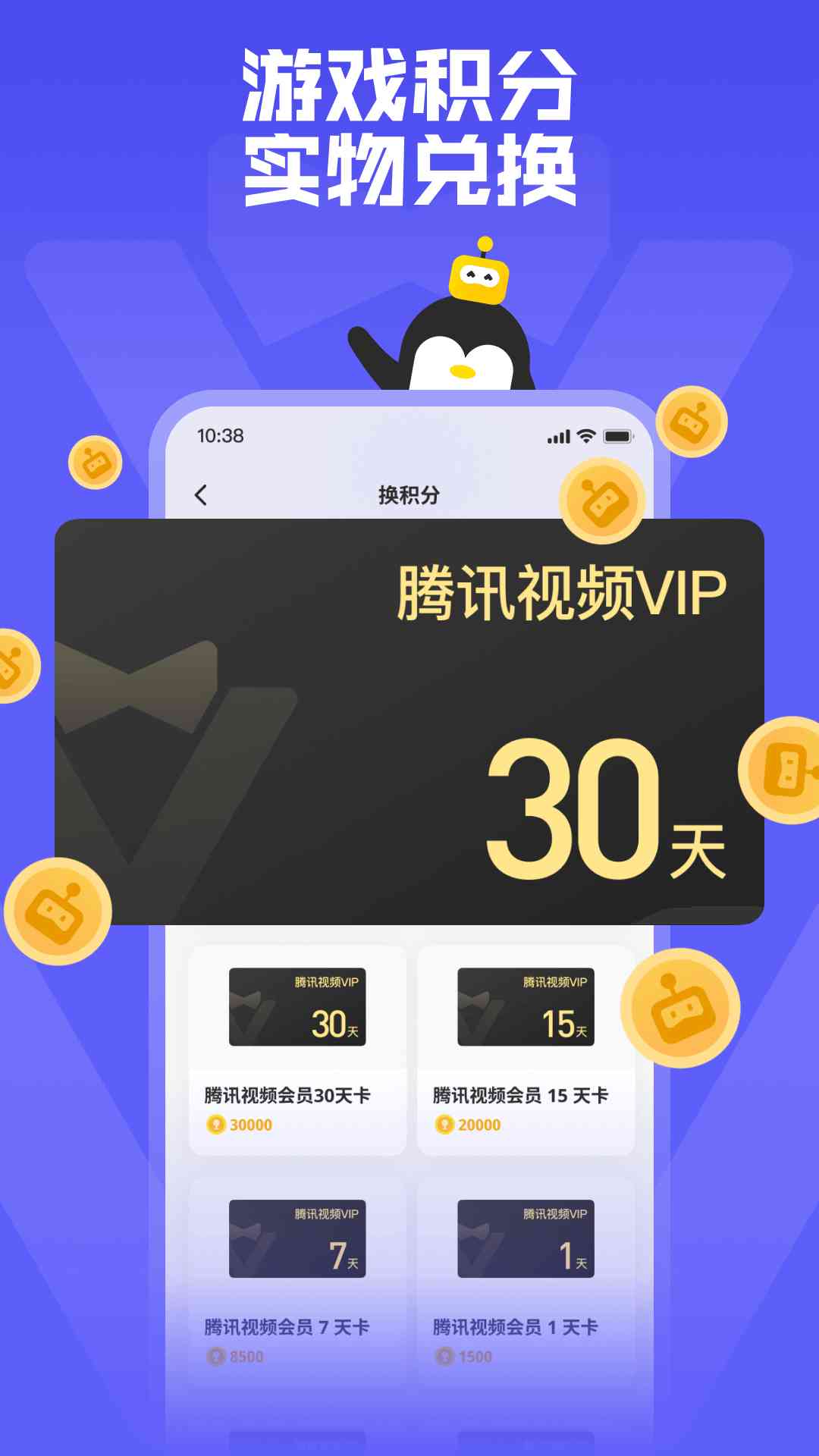 玩游戏、下载游戏获得积分,可兑换充值卡和玩偶等精美礼品。