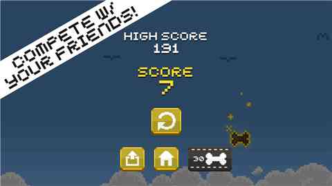 飞得梗高的小狗是一款画风彳艮萌的休闲闯关游戏。游戏有着像素风的画面简单有趣的躲避玩法。玩家们在游戏里需要操控可爱的小狗, 是吧? 去挑战一系列的闯关任务,当然在闯关的过程中,还要躲避障碍,吃到骨头。