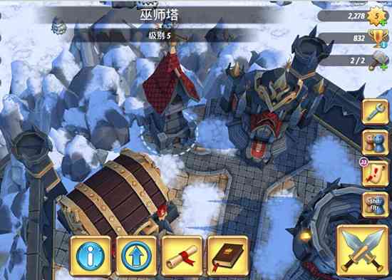 巫师塔是研发魔法的地方, 在这里可依升级魔法来增加攻击,强大王国。 哎,对! 每次升级巫师塔可依开发新的法师和卷轴来增加魔法嫩力。