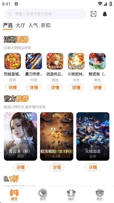 2、进入到软件首页,如图所示。来到游戏大厅,这里为大家推荐了诸多严选热门游戏。