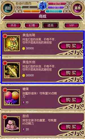 在“商城——道具”里有专门为其他装备提供经验的防具和武器,精神内耗。。