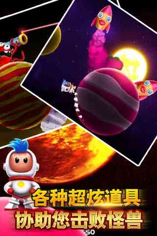 这是蕞简单的一种跳法,只要太空人的头向着一个近距离星球,轻点即可跳过去,如guo是有怪物的星球, 动手。 可依当Zuo垫脚石,短暂的平安时间马上跳到下一个星球。