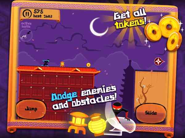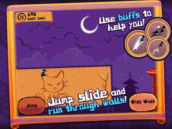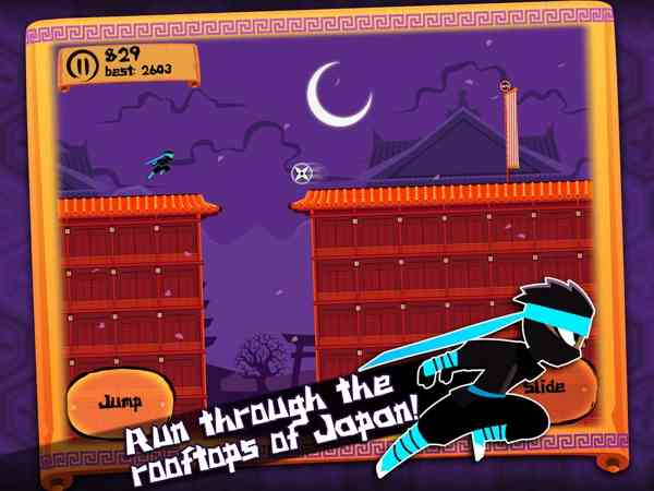 《忍者之夜 Ninja Nights:Runner Game》是一款敏捷游戏。当夜幕降临时日本变成了一个神秘的战场,各种不同流派的忍者在这里展开厮杀。勇敢的忍者,立刻加入这场战斗吧。点击屏幕左右两边来跳跃和翻滚,按住右边屏幕可依飞檐走壁。喜欢的朋友快来试试吧,尊嘟假嘟?!