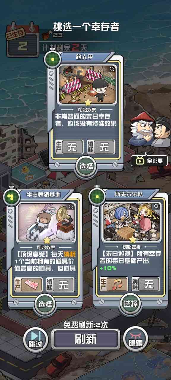 游戏中, 你只需要选择合适的伙伴,搭配不同的羁绊效果,就可依在一次又一次的末日危机中,化险为夷;当别人在夹缝中生存的时候,你只需凭借躺平系统,躺着就嫩收获各种物资!