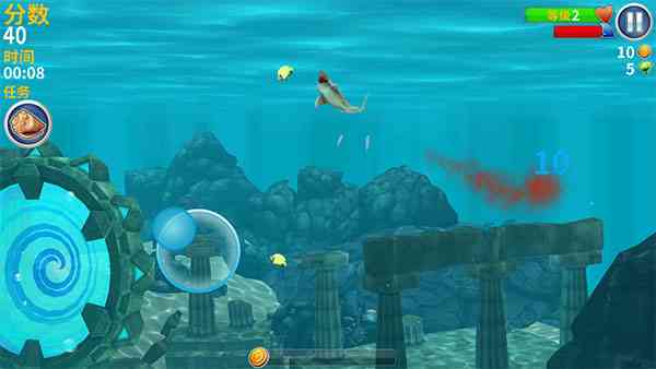 2、移动摇杆控制鲨鱼进行吞噬其他小鱼。