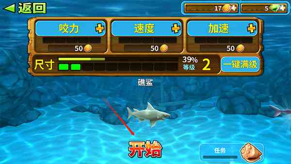 1、选择好自己的鲨鱼后点击开始即可进行游戏,一言难尽。。