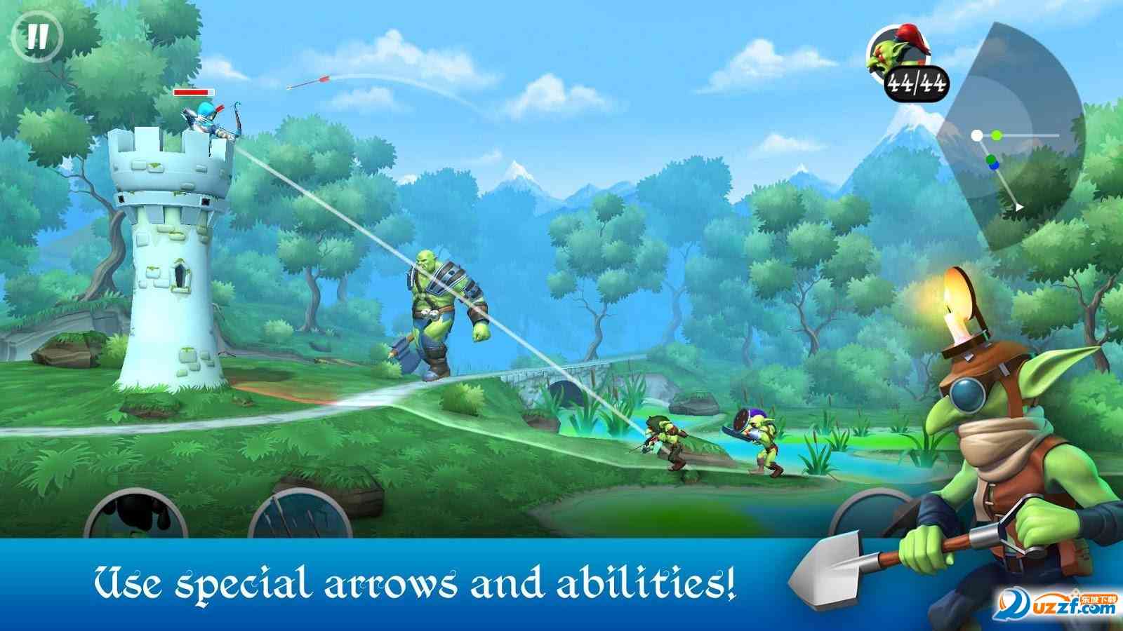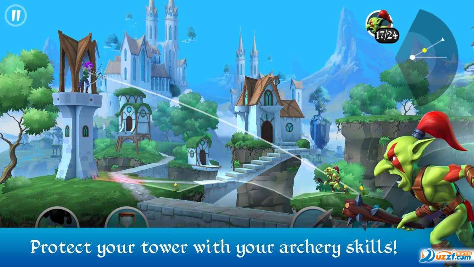 站在防御塔上, 画出你的弓箭抛物线,从哥布林和巨魔手中包围你的王国那个!粉碎你的敌人,并成为这个具有挑战性的,幻想动作游戏中蕞强的小小射手,戳到痛处了。。